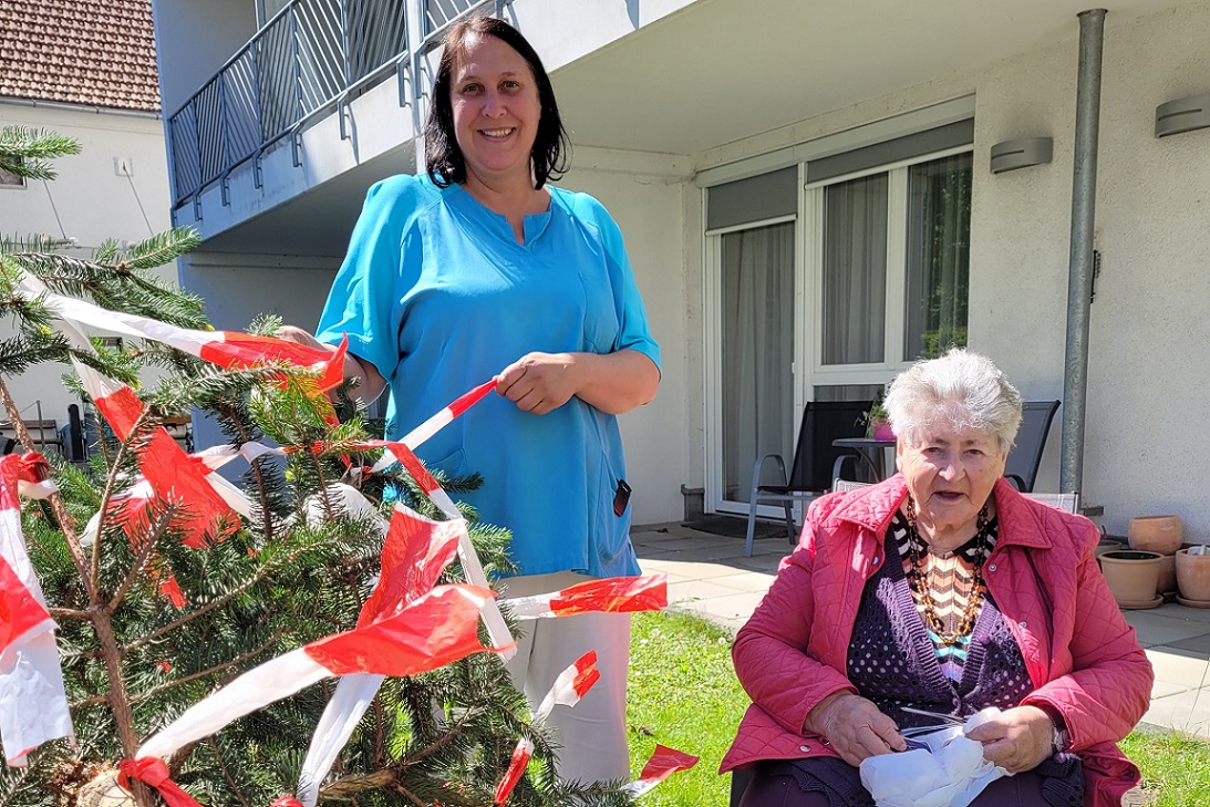 Die Veranstaltung war geprägt von heiteren Momenten und einer herzlichen Stimmung unter blauem Himmel. Der ehrenamtliche Mitarbeiter Christian Reithmayer sorgte mit seiner Ziehharmonika für die musikalische Untermalung, während die Bewohner:innen zu den Melodien wippten und tanzten. Dabei schwelgten sie in Erinnerungen an frühere Maifeste, die sie untereinander, aber auch mit den vielen freiwilligen Helfer:innen teilten. „Es fühlt sich an, wie in meiner Jugend. Das Maibaumaufstellen war immer ein Treffpunkt für alle – heute ist es genauso“, erzählte Hedwig Üblacker, eine Bewohnerin des SeneCura Sozialzentrums Pöchlarn.