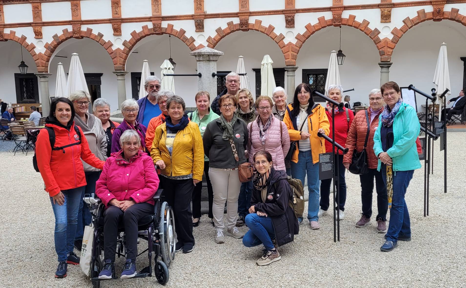 Bei schönstem Herbstwetter begab sich die Reisegruppe, bestehend aus 16 ehrenamtlichen Mitarbeiter:innen, zwei Seniorenbetreuerinnen und der Wohnbereichsleitung, im Rahmen des traditionellen „Ehrenamtsausflugs“ auf eine Entdeckungstour zur Schallaburg. Dort angekommen, wartete eine faszinierende Führung durch die aktuelle Ausstellung, die mit spannenden Einblicken in Kunst und Geschichte beeindruckte. Die Besucher:innen erfuhren viel Wissenswertes über die ausgestellten Objekte und die Historie der Burg. Nach der Führung bot sich ein Spaziergang durch den malerisch angelegten Garten der Schallaburg an, wo die Teilnehmenden die Natur genossen und miteinander ins Gespräch kamen. „Es war ein unvergesslicher Tag, die Atmosphäre war entspannt und die Führung sehr informativ“, berichtet Notburga Rank, eine der ehrenamtlichen Mitarbeiterinnen, begeistert.